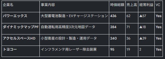 【平均時価総額:264億円】 VC率:100% (4/4社)